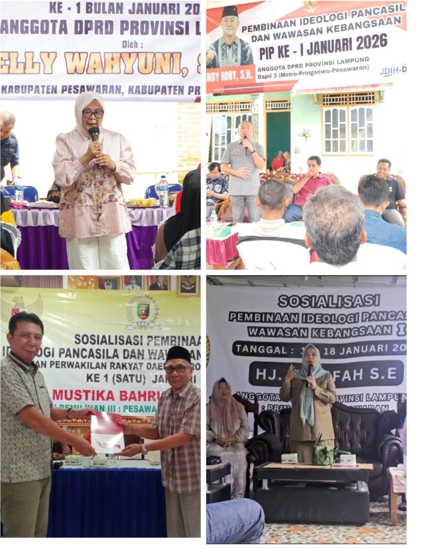 DPRD Provinsi Lampung Dapil III (Pringsewu, Pesawaran, Metro) Gelar Sosialisasi Pembinaan Ideologi PancasilaBandar Lampung — DPRD Provinsi Lampung melaksanakan kegiatan Sosialisasi Pembinaan Ideologi Pancasila pada 17–18 Januari 2026.
