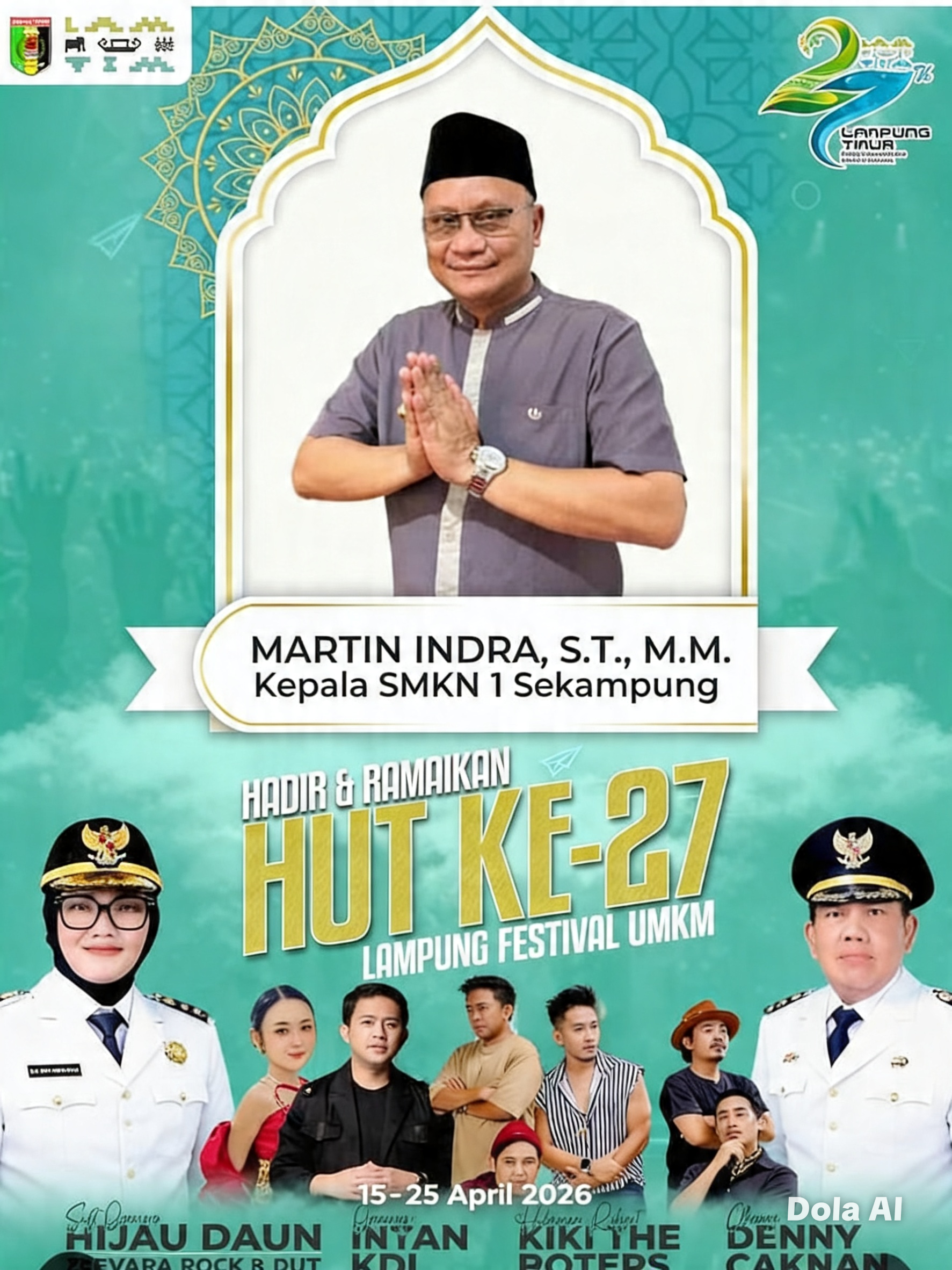 Bandar Lampung,Cakrawala- 16 April 2026 – Kepala SMKN 1 Sekampung, Martin Indra, S.T., M.M., menyampaikan ucapan selamat dan apresiasi atas peringatan Hari Ulang Tahun (HUT) ke-27 Kabupaten Lampung Timur yang bertepatan dengan pelaksanaan Lampung Festival UMKM.