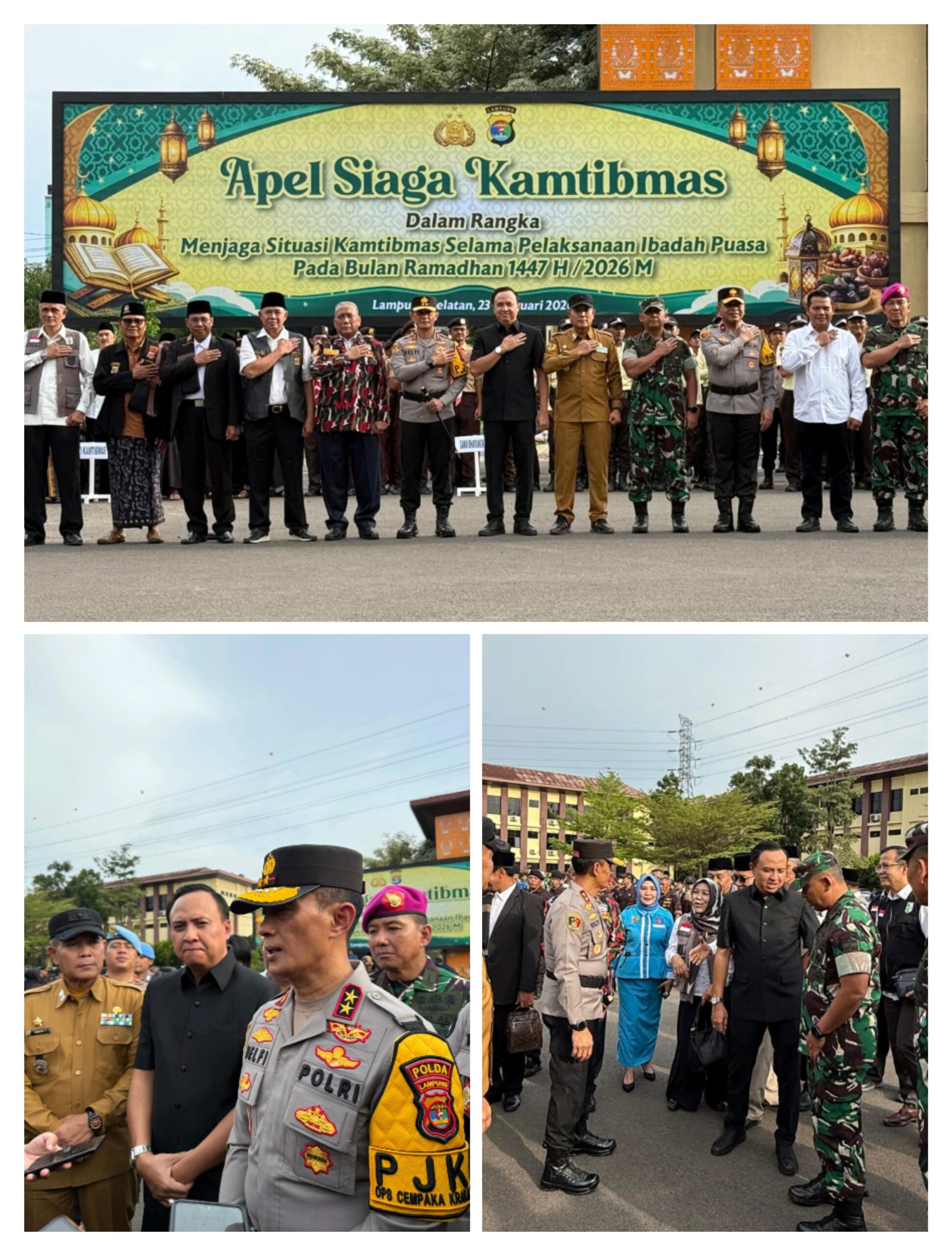 Apel Siaga dipimpin oleh Kapolda Lampung dan diikuti oleh peserta dari berbagai instansi sebagai wujud komitmen bersama dalam memberikan rasa aman dan nyaman kepada masyarakat selama Ramadan 1447 H. ( Tim Humas)